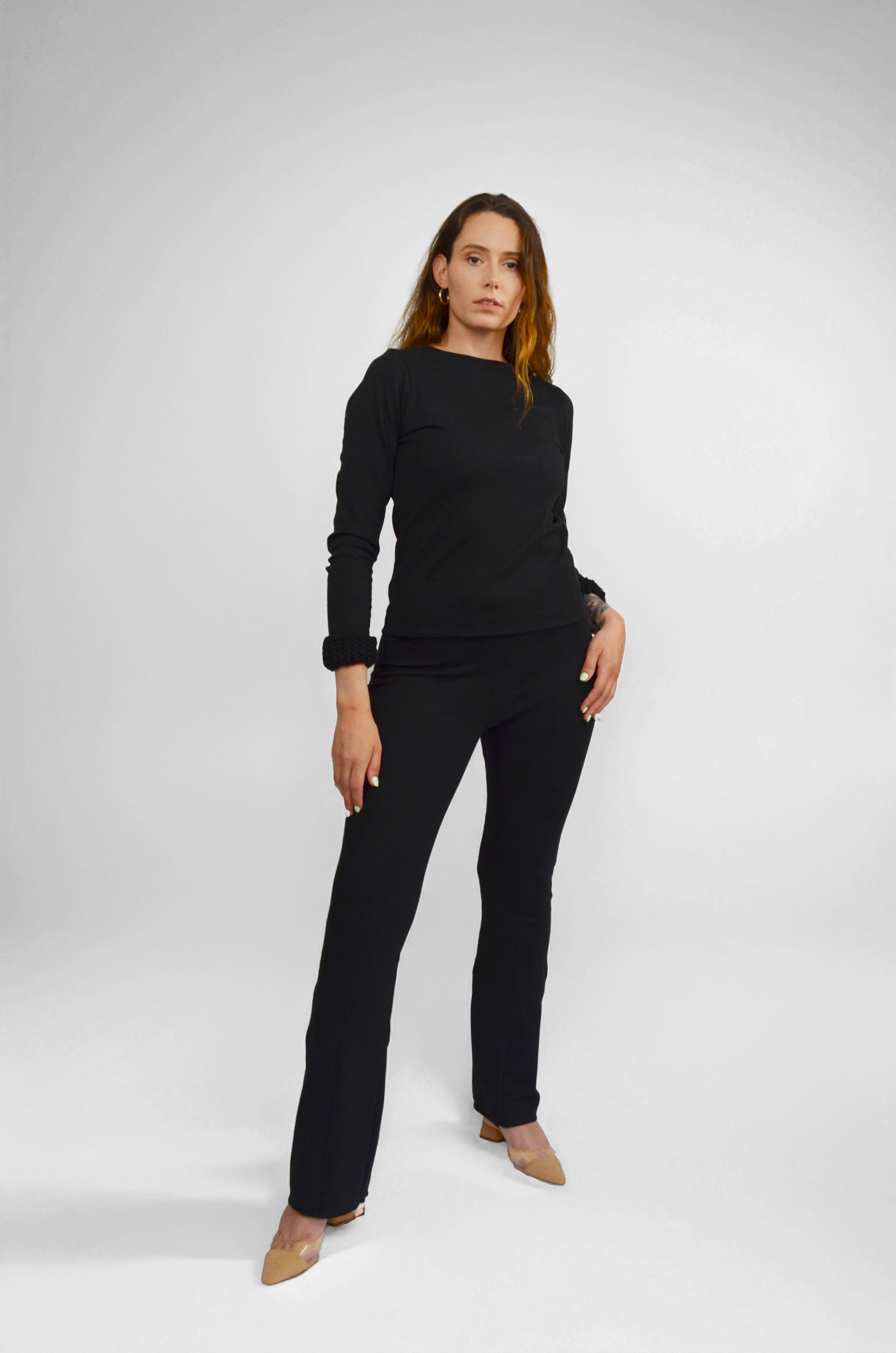 The Signature Organic Flared Pant is a timeless essential that blends comfort with understated sophistication. Crafted from mid-weight organic cotton with a hint of stretch, it features a sleek flared-leg silhouette, front seam detailing, and a wide hem for subtle structure. A hidden elastic waistband ensures a smooth, tailored fit without compromising ease. Effortlessly versatile, it pairs seamlessly with both casual and elevated pieces.